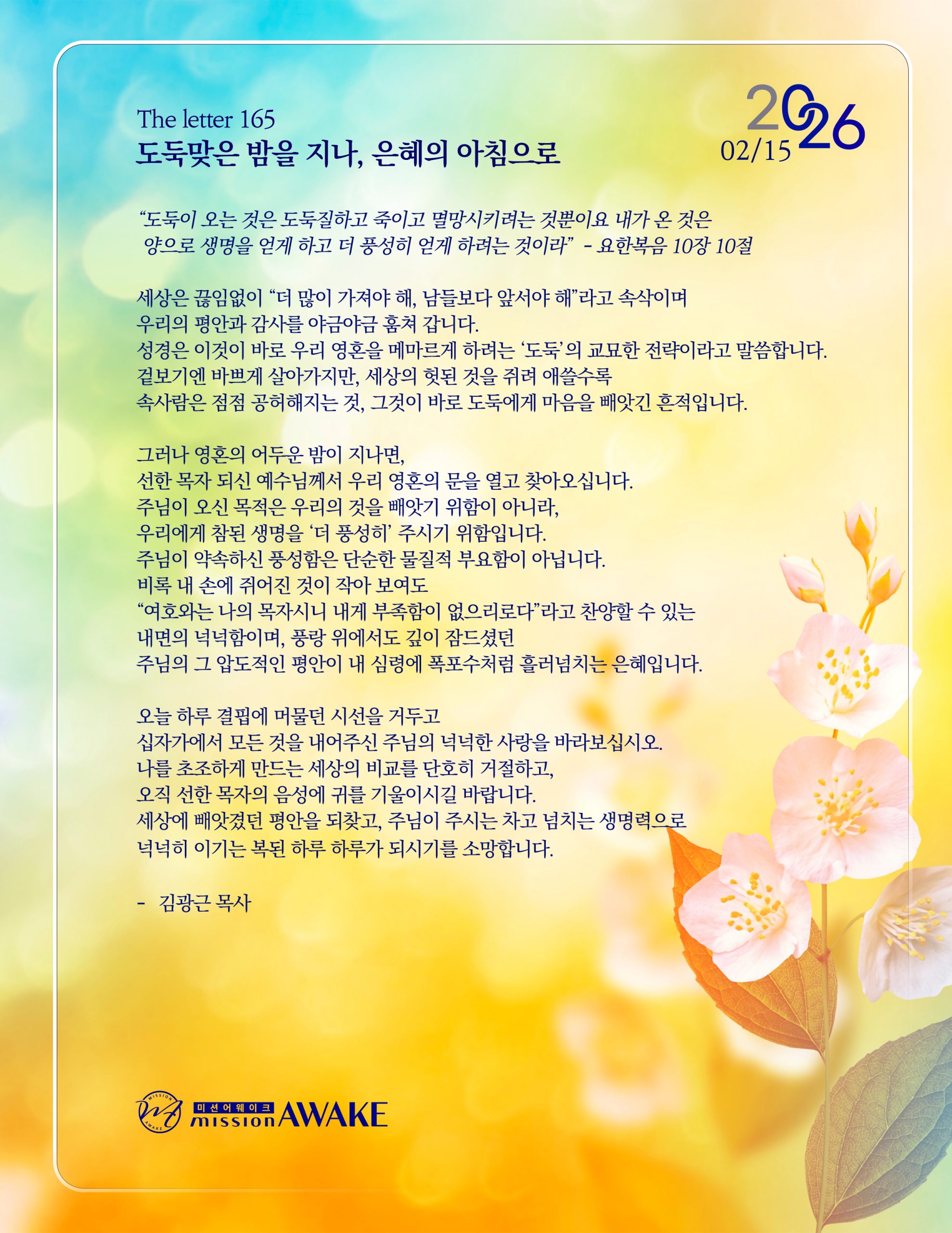 제목 : The letter 165 – 도둑맞은 밤을 지나 은혜의 아침으로